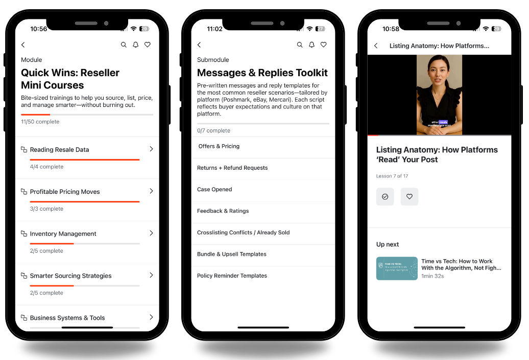 A multi-vault sourcing system with real resale data across Brand, Style, Trend, Evergreen, and Designer Vaults — plus the Smart Seller Toolkit for execution.